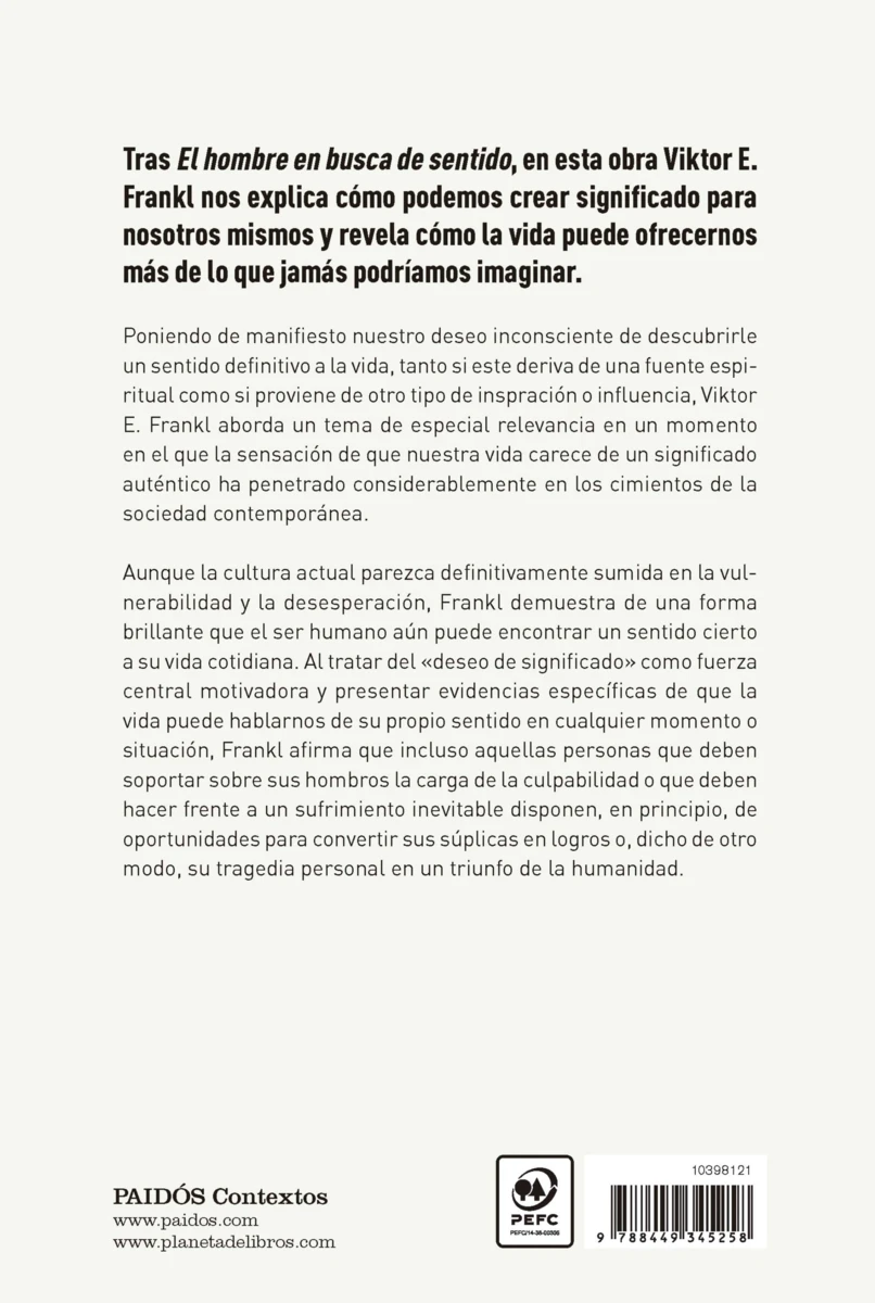 Poniendo de manifiesto nuestro deseo inconsciente de descubrirle un sentido definitivo a la vida, tanto si este deriva de una fuente espiritual como si proviene de otro tipo de inspiración o influencia, el doctor Frankl aborda un tema de especial relevancia en un momento en el que la...