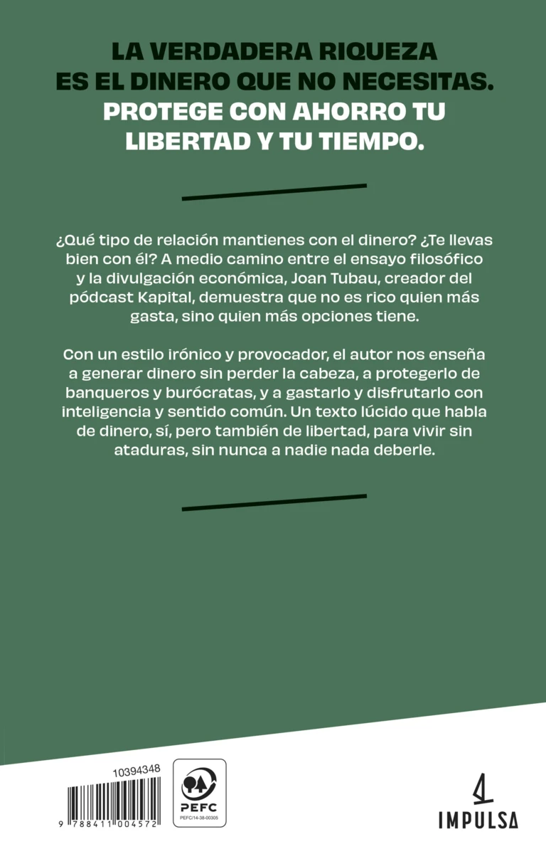 ¿Qué tipo de relación mantienes con el dinero? ¿Te llevas bien con él? A medio camino entre el ensayo filosófico y la divulgación económica, Joan Tubau, creador del pódcast Kapital, demuestra que no es rico quien más gasta, sino quien más opciones tiene.