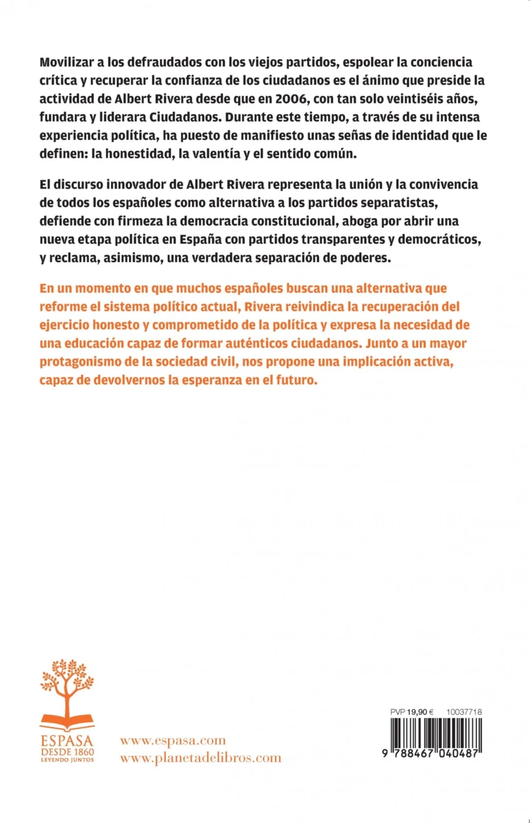 Movilizar a los defraudados con los viejos partidos, espolear la conciencia crítica y recuperar la confianza de los ciudadanos es el ánimo que preside la actividad de Albert Rivera desde que en 2006, con tan solo veintiséis años, fundara y liderara Ciudadanos. Durante este...