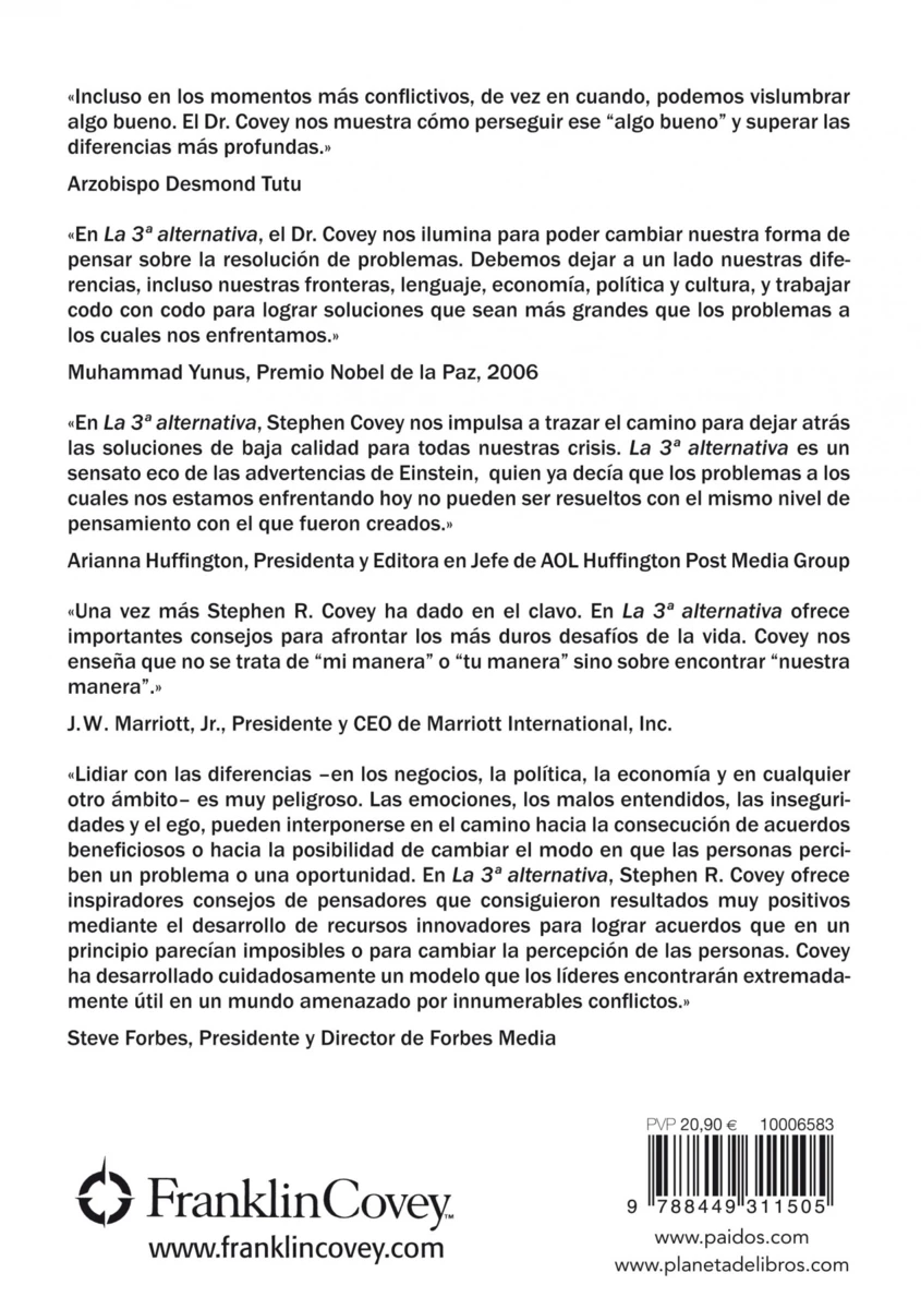 El Time lo incluyó en su lista de los veinticinco norteamericanos más influyentes y recibió la condecoración de siete doctorados honoris causa. El doctor Covey fue cofundador y vicepresidente de la FranklinCovey Company, empresa líder a escala global en servicios profesionales, con oficinas en más de 150 países. Todas estas organizaciones comparten su visión, su disciplina y su pasión por motivar, mejorar y proveer herramientas destinadas al cambio y al crecimiento de individuos y organizaciones de todo el mundo.